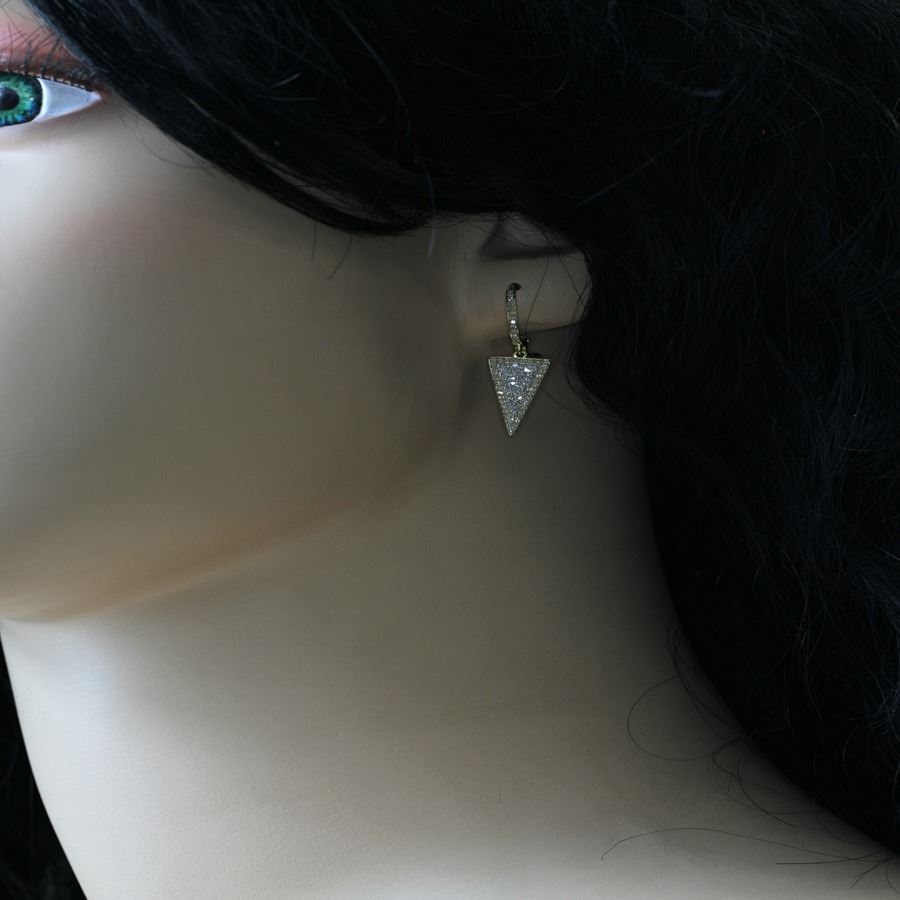0.52 ct F, SI2-I1 Pavé Diamonds Triangle Geometric Dangle Drop Earrings 14Kt Yellow Gold 3.41 gms :Total Carat Weight:0.52:Color & Clarity:F, SI2-I1:Metal:14Kt Yellow Gold :Gram Weight: 3.41:Dimension Width approx.::8mmDimension Height approx.:30mm