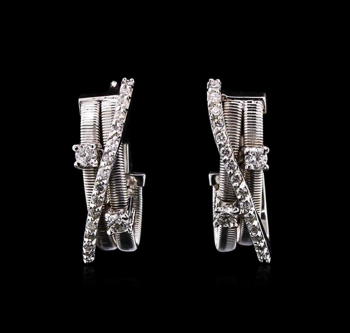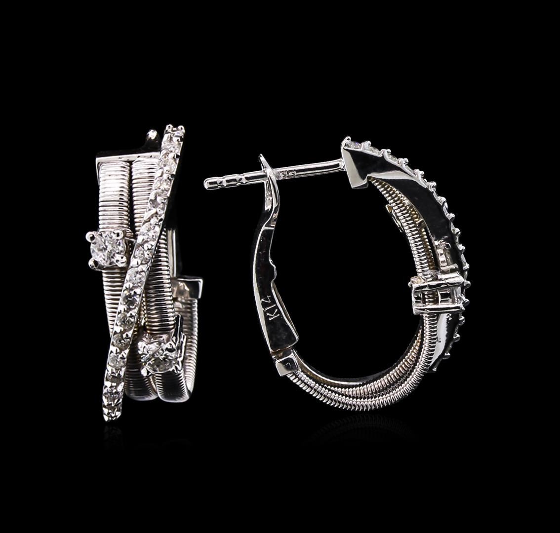 One pair of earrings featuring: 14KT white gold weighing 7.50 grams containing 36 diamonds with a total weight of 0.52ct.