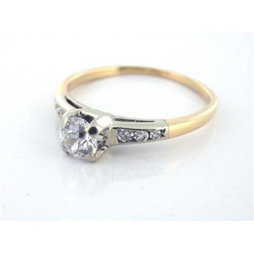 This is a beautiful engagement ring from 1939. Brilliant 0.52ct Old European Cut VVS1-H diamond surrounded by 0.12tcw of brilliant Single Cut diamonds. These gorgeous stones are set in a band of 14k Yellow Gold and Platinum, creating a fine combination. The ring weighs 1.9 grams and is a size 6.5.This ring is appraisal priced at $2,795.00.