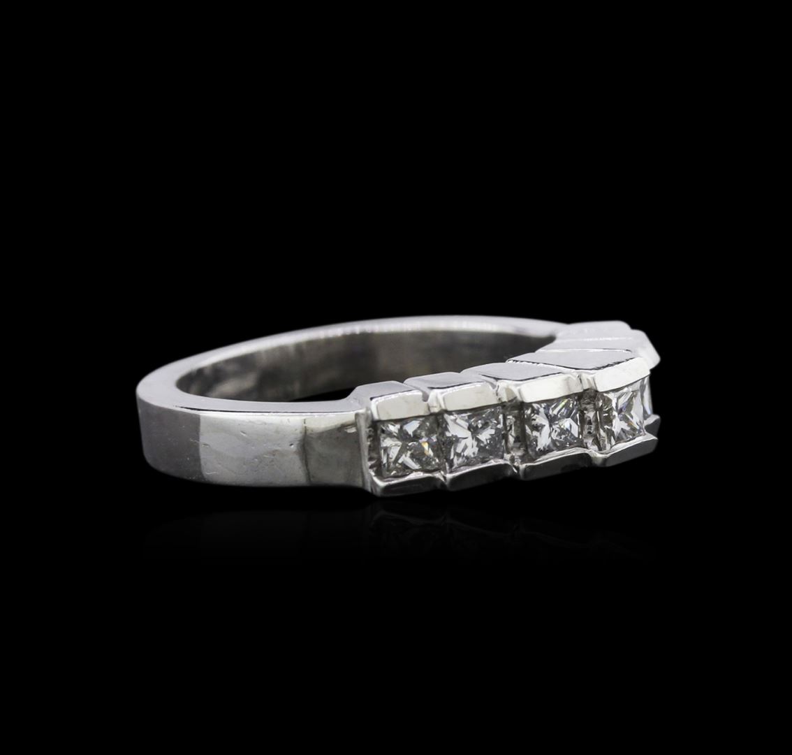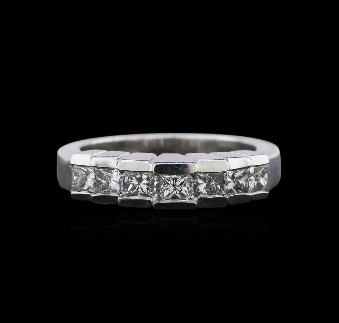One ring featuring: platinum weighing 10.95 grams containing channel set princess cut diamonds with a total weight of 0.52ct.