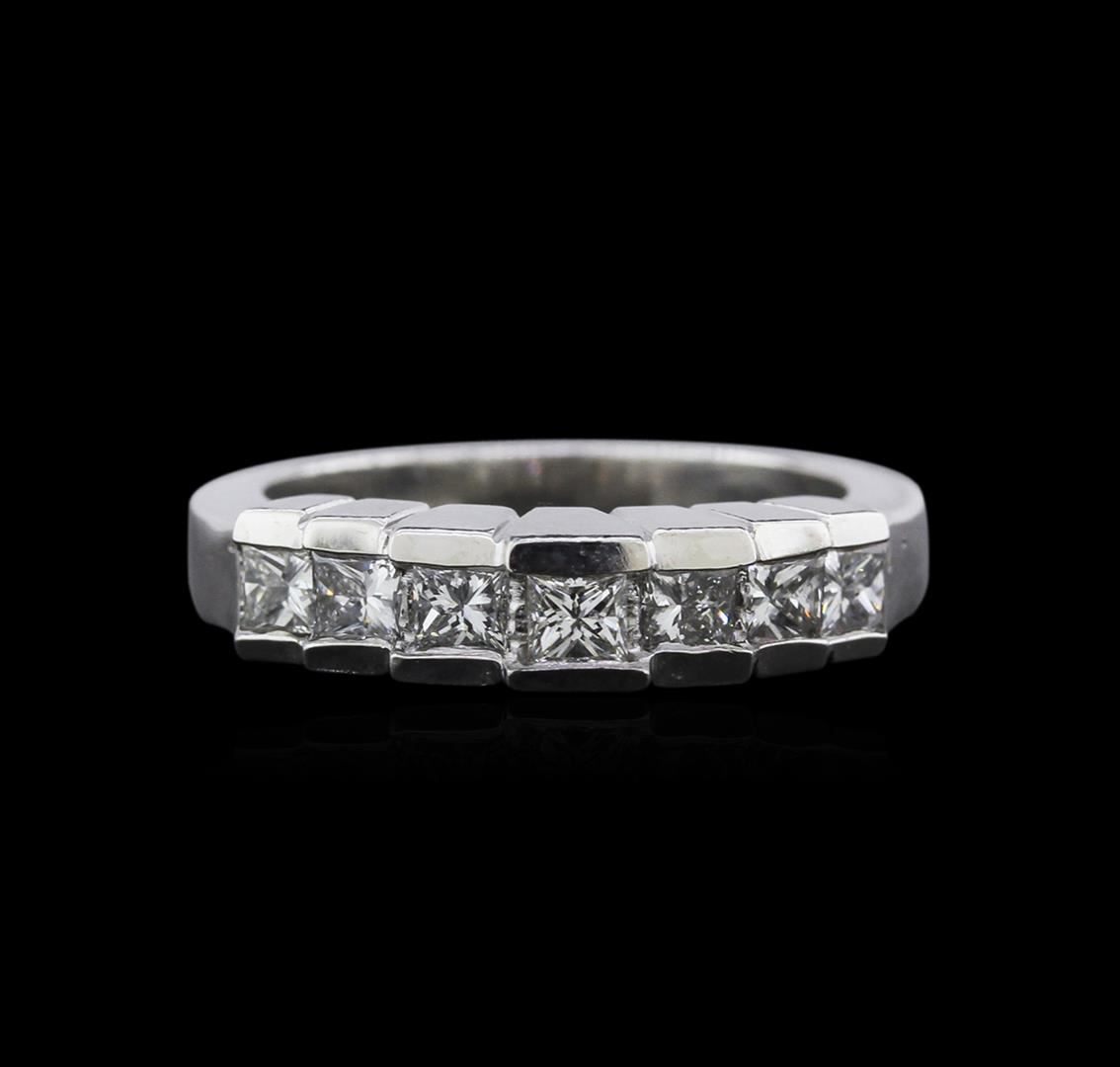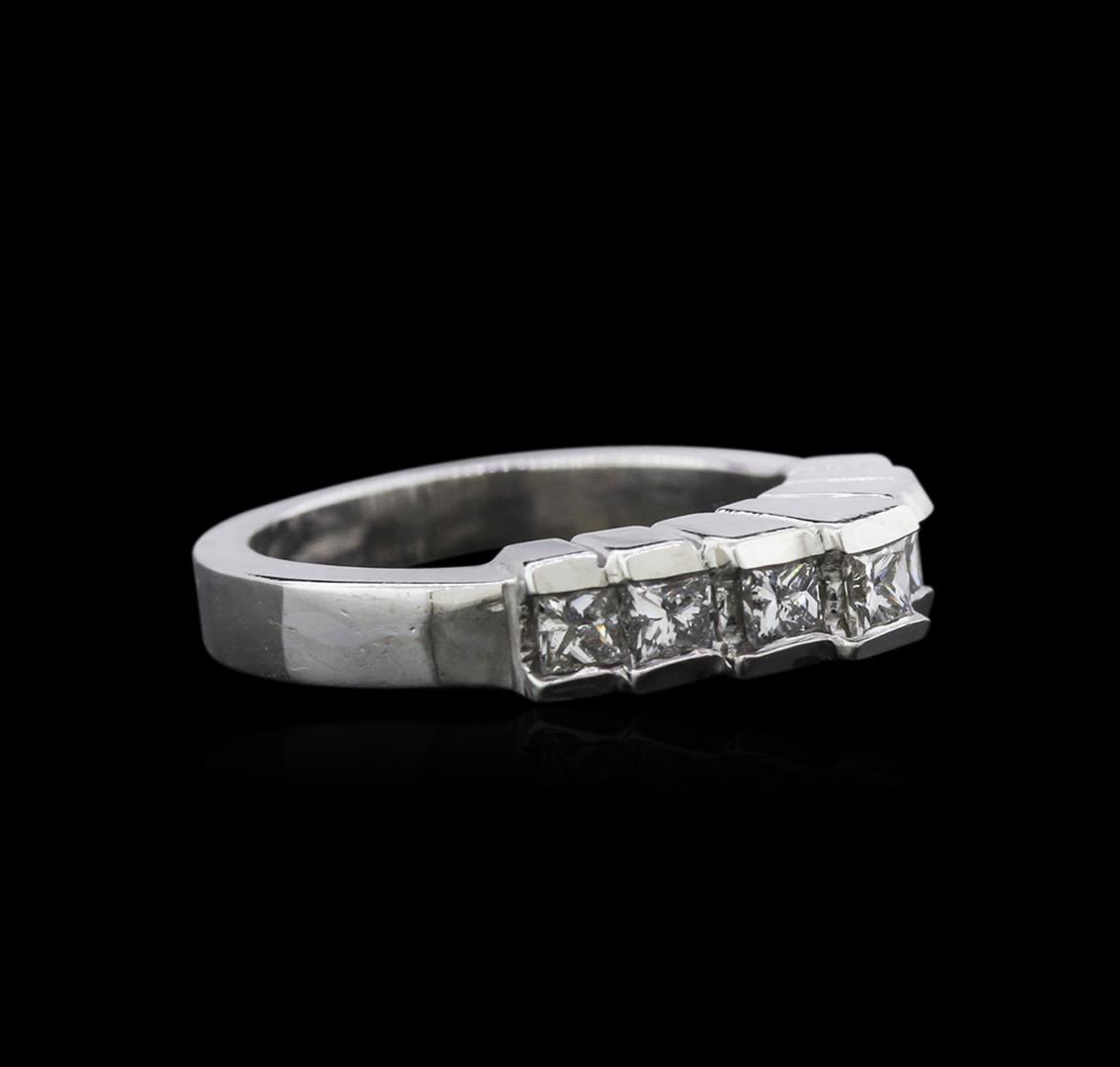 One ring featuring: platinum weighing 10.95 grams containing channel set princess cut diamonds with a total weight of 0.52ct.