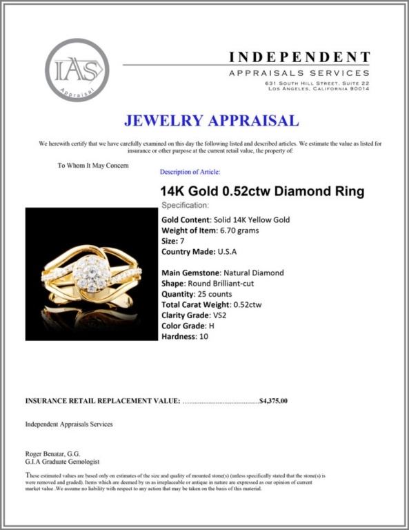 Regarding Appraised Jewelry and Loose Stones - Auctionfarm sends them out to a third party for Retail Replacement Value Appraisals, which are the most common. These types of evaluations are written for insurance needs. This would be the cost to replace the jewelry with an item of equal quality and kind, considered to be the current market price or the replacement value. This type of appraisal is done to protect you in the event of damage or loss of a valuable item. Our appraisals are conducted by independent 3rd Party appraisal firms that utilizes Certified GIA Gemologist. Appraisals should be used for verification of gemstone and/or metal weight, size, and grade only, not actual value. Appraisal value should be considered for insurance purposes only, not actual value, as price varies greatly from retail locations thru out the world. Items should not be purchased with the expectation to resell for appraisal price, or for profit.