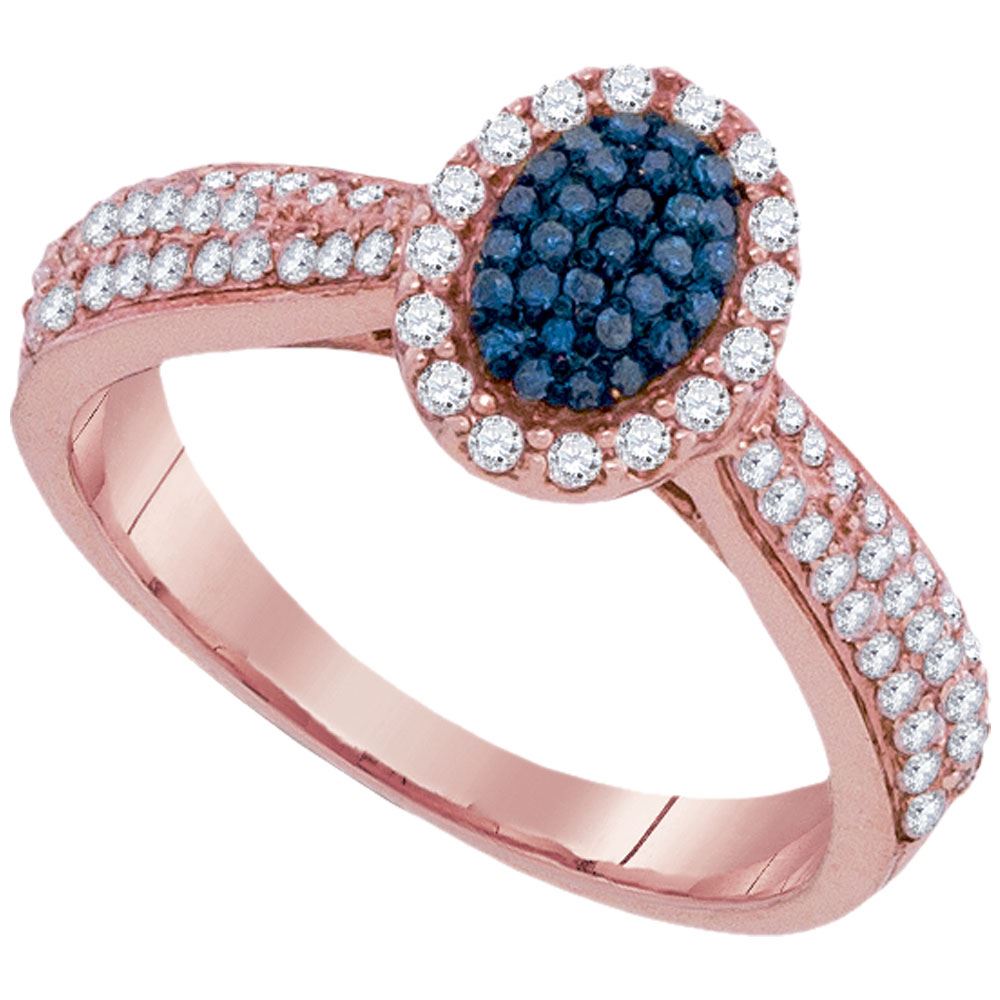 REF-37X5Y- SKU: GD93977 ---- 0.53 CTW Blue Color Diamond Oval Cluster Ring 10KT Rose Gold