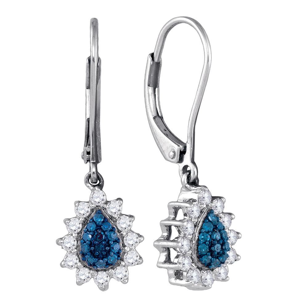 REF-34F4N- SKU: GD86399 ---- 0.53 CTW Blue Color Diamond Teardrop Dangle Earrings 10KT White Gold