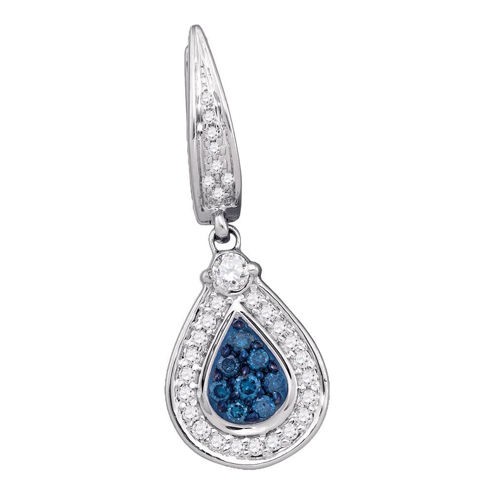 REF-44X9Y- SKU: GD75073 ---- 0.53 CTW Blue Color Diamond Teardrop Dangle Earrings 10KT White Gold