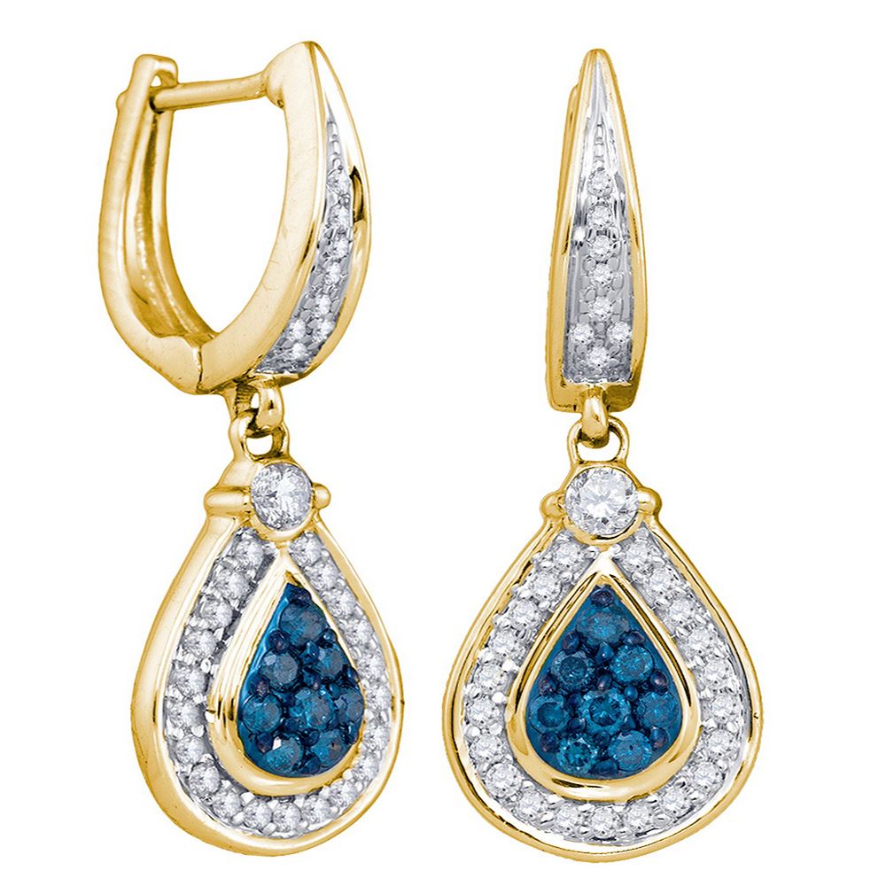 REF-44W9K- SKU: GD75878 ---- 0.53 CTW Blue Color Diamond Teardrop Dangle Earrings 10KT Yellow Gold