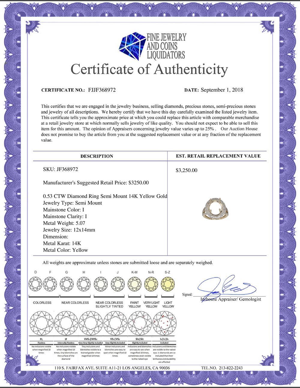 REF-41F2N - JF368972 ---- 0.53 CTW White Round Diamond Semi Mount Ring 14K Yellow Gold