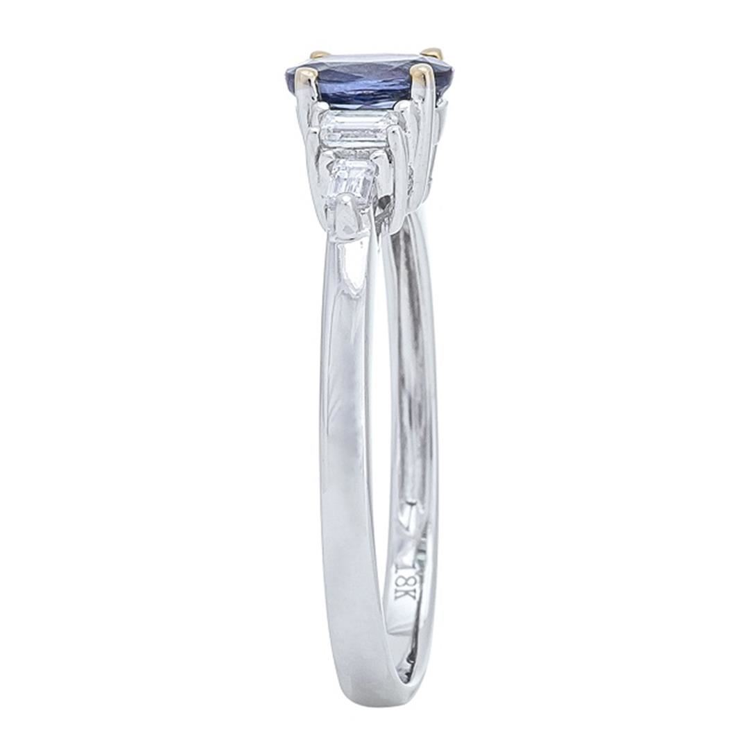 One Alexandrite and Diamond Ring featuring: 18KT White Gold with a total weight of 2.10 grams, Alexandrite with a total weight of 0.53ct and 4 Baguette Cut Diamonds with a total weight of 0.21ctw.