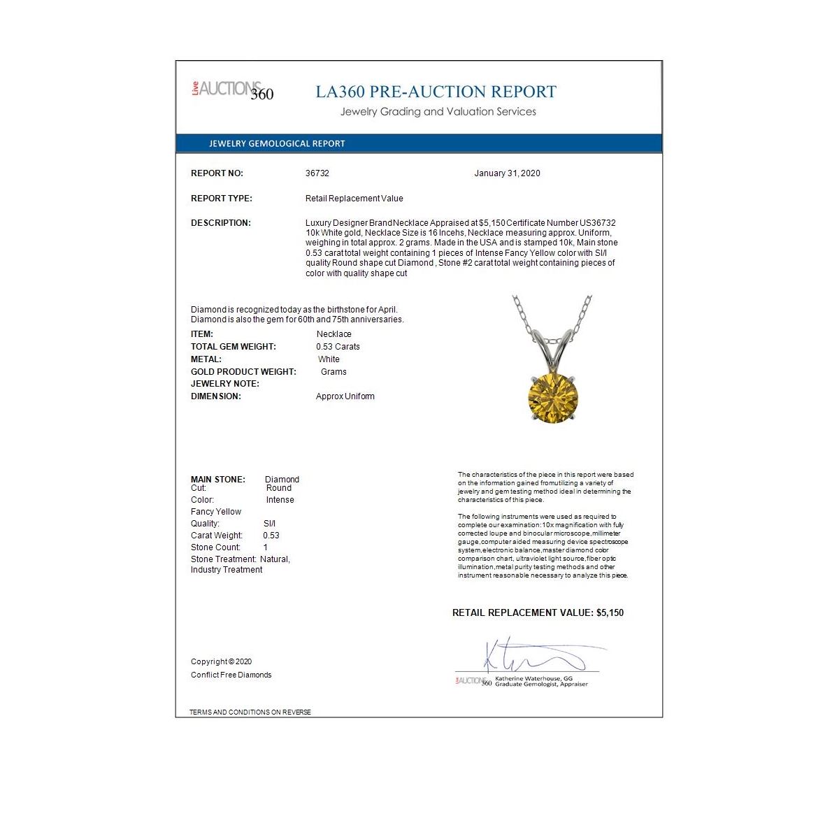 REF-57Y8X - SKU: 36732 ---- 0.53 ctw Certified Intense Yellow Diamond Necklace 10k White Gold