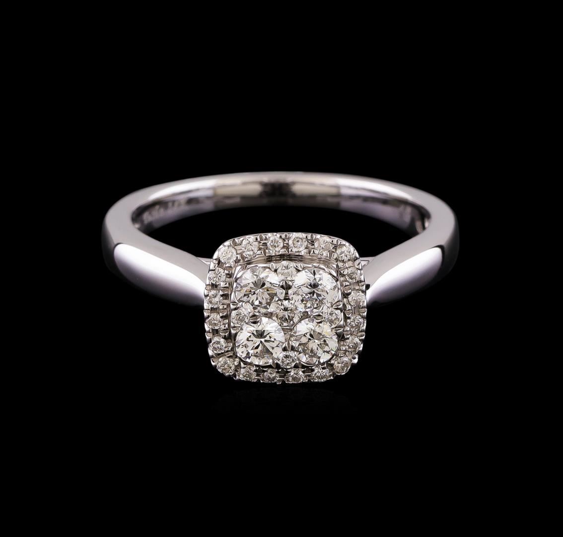 One electronically tested 14KT white gold lady's cast wedding ring with a cathedral halo with a bright polish finish. The featured lady's ring has a shank measuring 2.07 millimeters in width. Identified with markings of '14K'. Condition is new, good workmanship. Containing: Four prong set round brilliant cut diamonds, measuring 3.00 - 2.90 x 1.83mm (depth est.) approximate total weight of 4 Stones = 0.40ct. Graded in the setting. Clarity SI-1 to SI-2. Color: H - I Cut Good One prong set round brilliant cut diamond, measuring 2.00 - 1.95 x 1.23mm (depth est.) approximate weight of 0.03ct. Graded in the setting. Clarity SI-1. Color: H Cut Good Twenty-Four prong set round brilliant cut diamonds, measuring 1.10 - 1.00 x 0.65mm (depth est.) approximate total weight of 24 Stones = 0.10ct. Graded in the setting. Clarity SI-1 to SI-2. Color: H - I Cut Good. Total Weight of Diamonds 0.53ct.. Total Weight of Ring 4.20gm. GAS Appraised at $2,265.00.