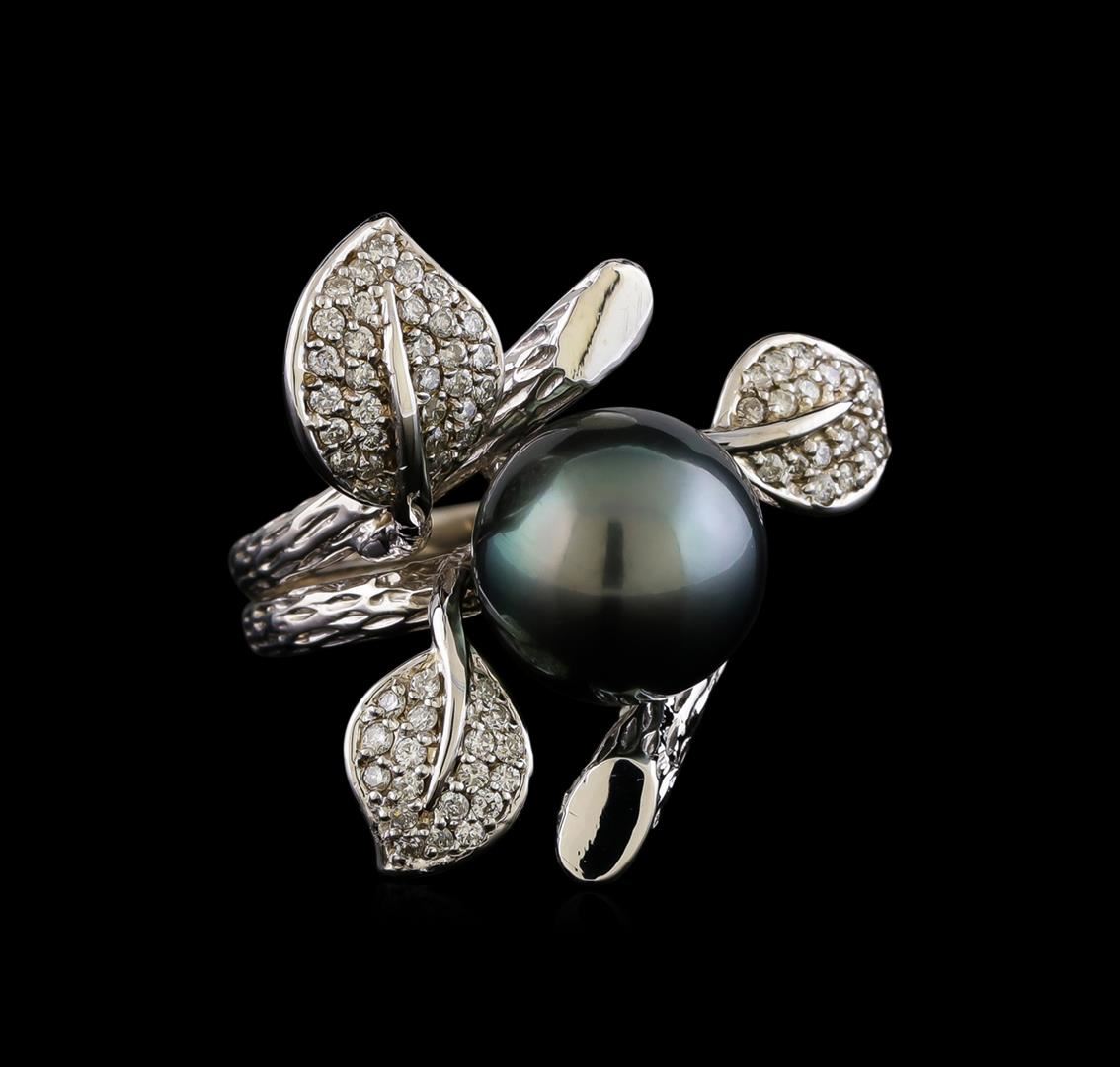One ring featuring: 14KT white gold weighing 8.96 grams containing one pearl and diamonds weighing 0.53ctw.