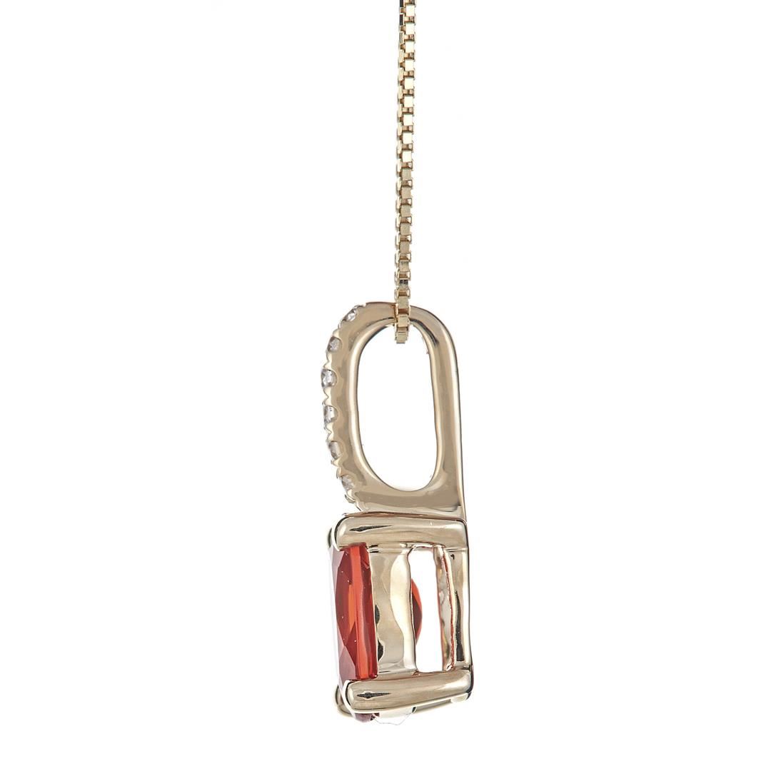 One pendant with chain featuring: 14KT yellow gold weighing 0.77 grams containing one brilliant cut fire opal with a total weight of 0.53 ct and diamonds weighing a total of 0.04  ctw.