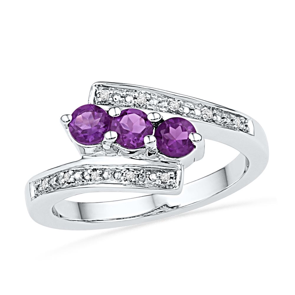 REF-22M4H- SKU: GD100615 ---- 0.54 CTW Created Amethyst 3-stone Bypass Ring 10KT White Gold