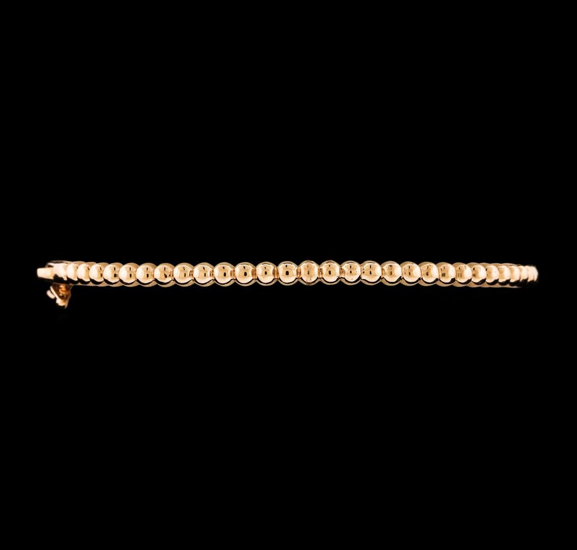 One electronically tested 14KT rose gold lady's combination cast & assembled fashion bangle bracelet with a tongue clasp & foldover safety with a bright polish finish. The featured lady's bracelet measures approximately seven inches in length. Identified with markings of 'K14'. Condition is new, good workmanship. Containing: Eight prong set round brilliant cut diamonds, measuring 2.70 - 2.60 x 1.59mm (depth est.) approximate total weight of 8 Stones = 0.54ct. Graded in the setting. Clarity SI-1 to I-1. Color: G - H Cut Good. Total Weight of Diamonds 0.54ct.. Total Weight of Bangle Bracelet 12.90gm. GAS Appraised at $3,340.00.