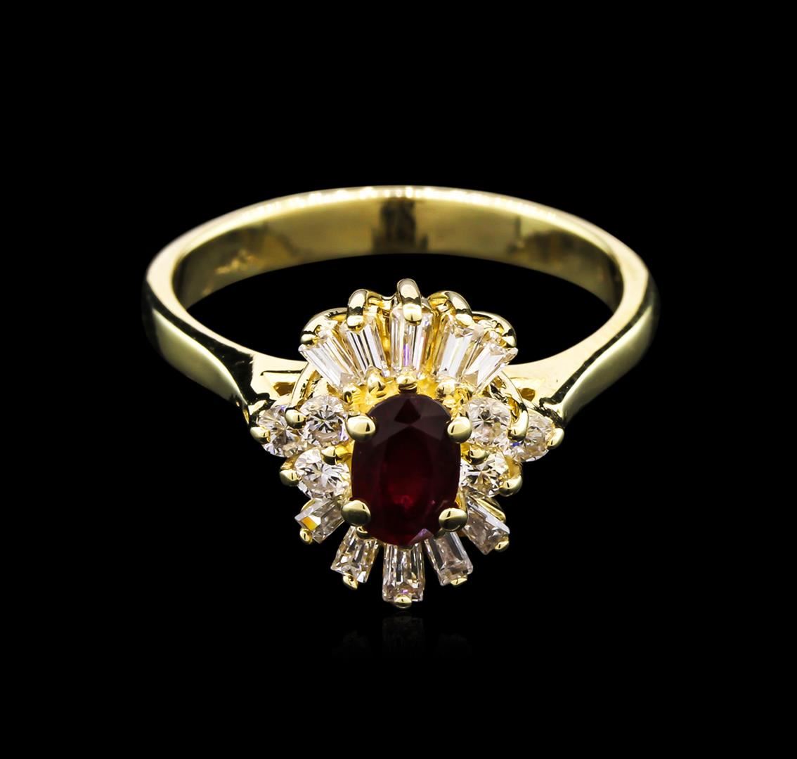 One ring featuring: 14KT yellow gold weighing 3.85 grams containing one ruby center stone with a total weight of 0.54ct and diamonds with a total weight of 0.55ct.
