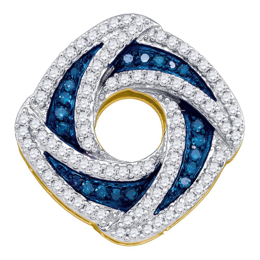REF-34N4F- SKU: GD82101 ---- 0.55 CTW Blue Color Diamond Square Pendant 10KT Yellow Gold