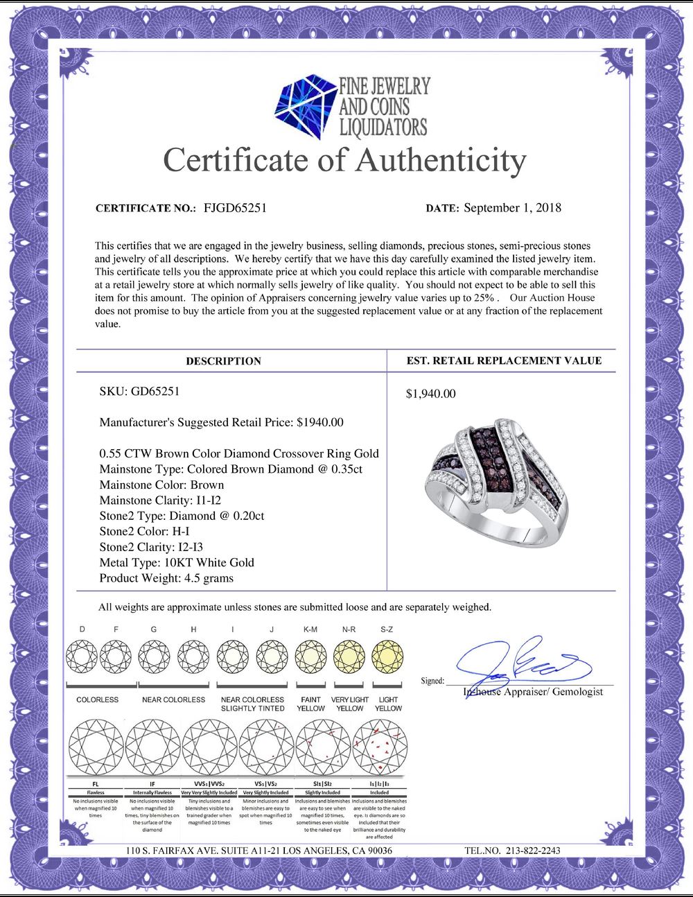 REF-49W5K- SKU: GD65251 ---- 0.55 CTW Brown Color Diamond Crossover Ring 10KT White Gold