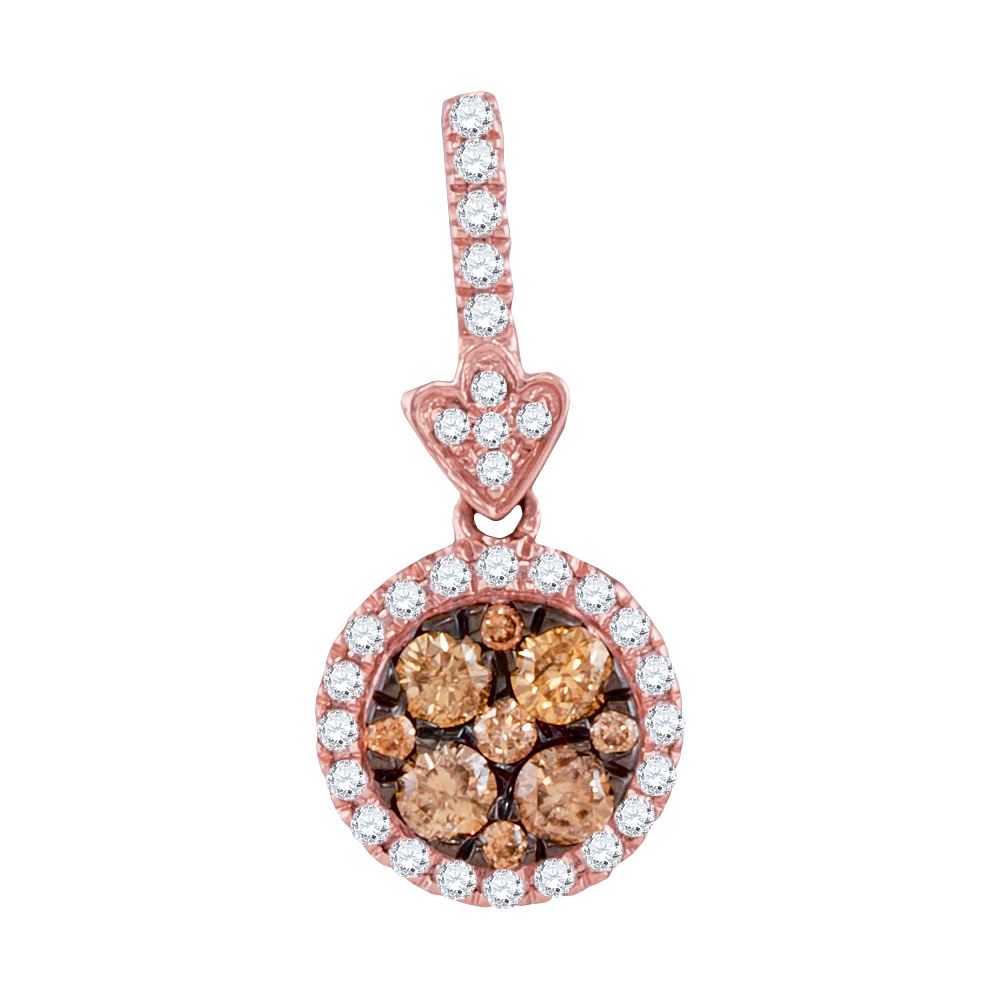 REF-47F8N- SKU: GD95507 ---- 0.55 CTW Brown Diamond Circle Cluster Pendant 14KT Rose Gold