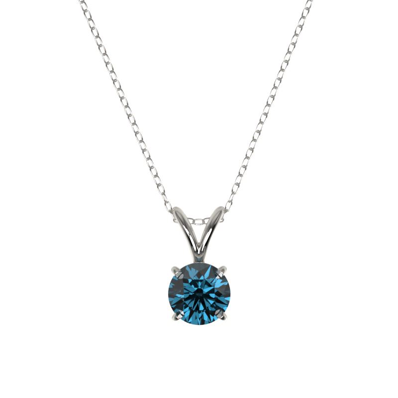 REF-51W2F -36730 ---- 0.55 CTW Certified Intense Blue SI Diamond Solitaire Necklace 10K White Gold ---- Luxury Designer Brand Necklace Appraised at $3,750 Certificate Number US36730 10k White gold, Necklace Size is 16 Incehs, Necklace measuring approx. Uniform, weighing in total approx. 2 grams. Made in the USA and is stamped 10k, Main stone 0.55 carat total weight containing 1 pieces of Intense Fancy Blue color with SI quality Round shape cut Diamond , Stone #2 carat total weight containing pieces of color with quality shape cut