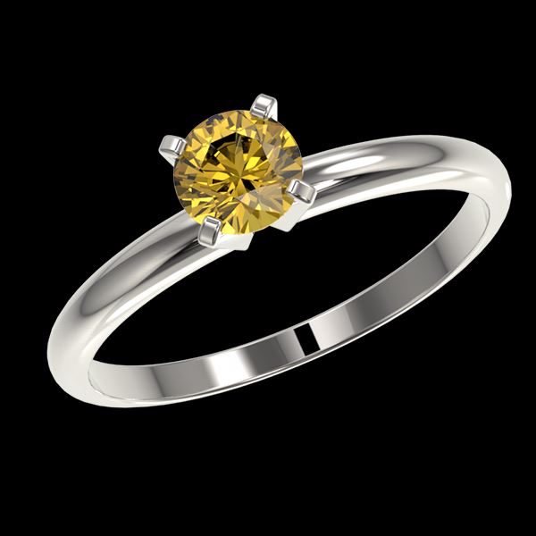 REF-58X2T -36380 ---- 0.55 CTW Certified Intense Yellow SI Diamond Solitaire Engagement Ring 10K White Gold ---- Luxury Designer Brand Ring Appraised at $3,500 Certificate Number US36380 10k White gold, Ring Size is 7, Ring measuring approx. Uniform, weighing in total approx. 2.6 grams. Made in the USA and is stamped 10k, Main stone 0.55 carat total weight containing 1 pieces of Intense Fancy Yellow color with SI quality Round shape cut Diamond , Stone #2 carat total weight containing pieces of color with quality shape cut