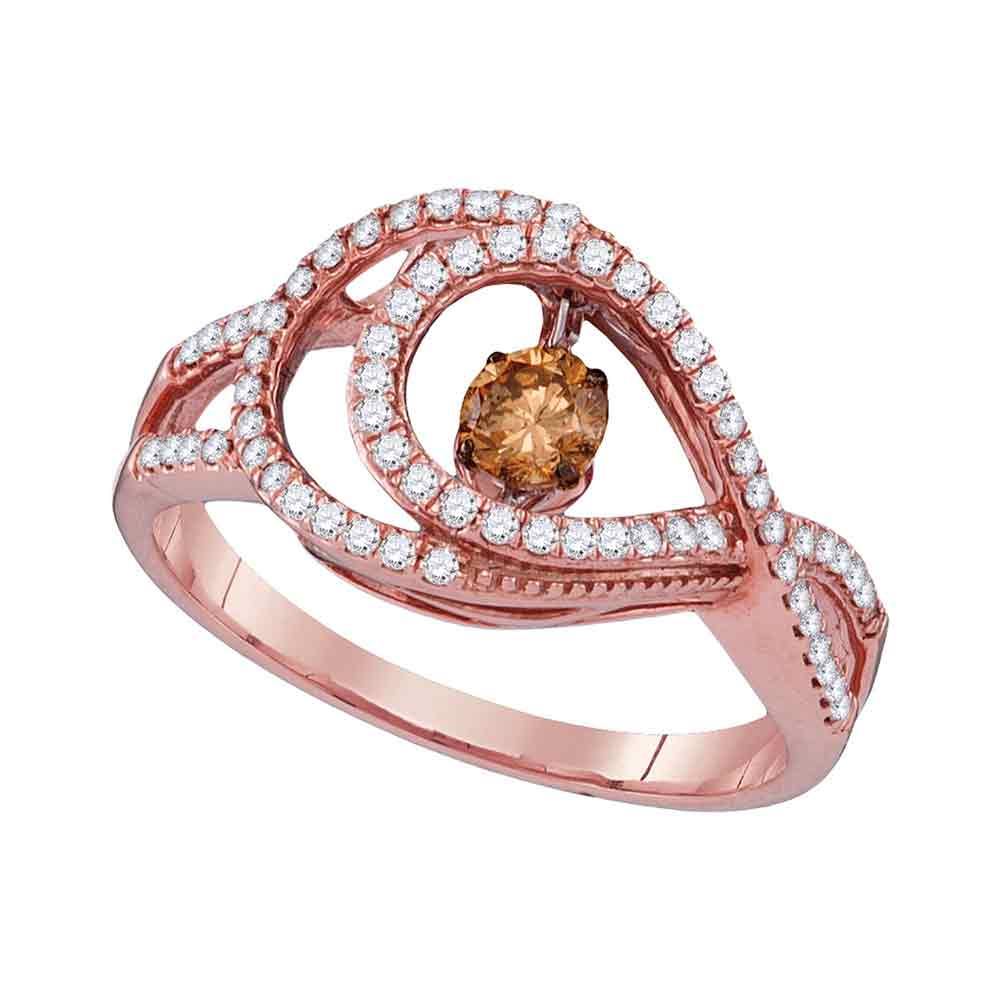 REF-67Y4X- SKU: GD110235 ---- 0.55 CTW Cognac-brown Color Diamond Moving Twinkle Ring 10KT Rose Gold