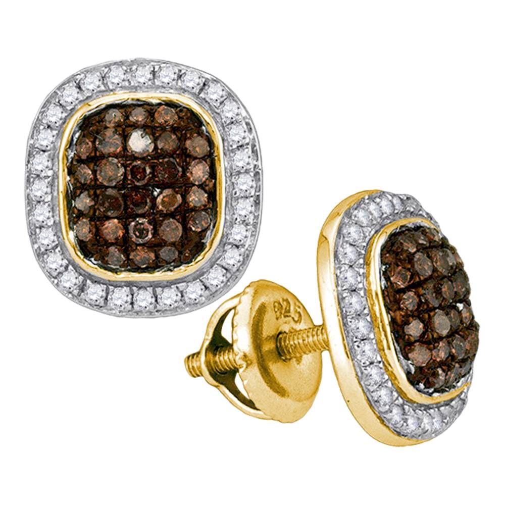 REF-30X2Y- SKU: GD89127 ---- 0.55 CTW Cognac-brown Color Diamond Oval Cluster Earrings 10KT Yellow Gold