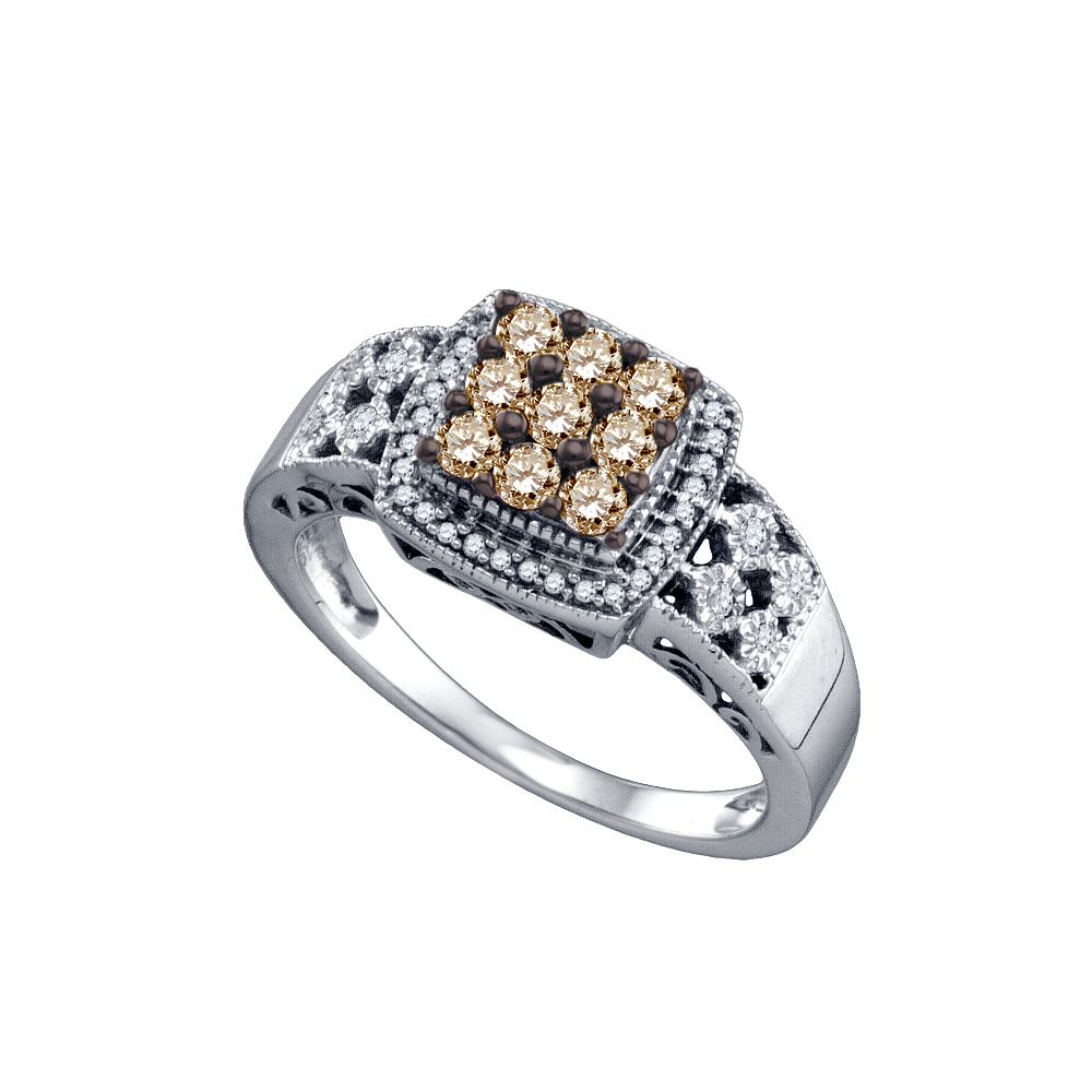 REF-55N9Y ---- 0.55 CTW Cognac-brown Colored Diamond Cluster Ring 10K White Gold - SKU: GD70941