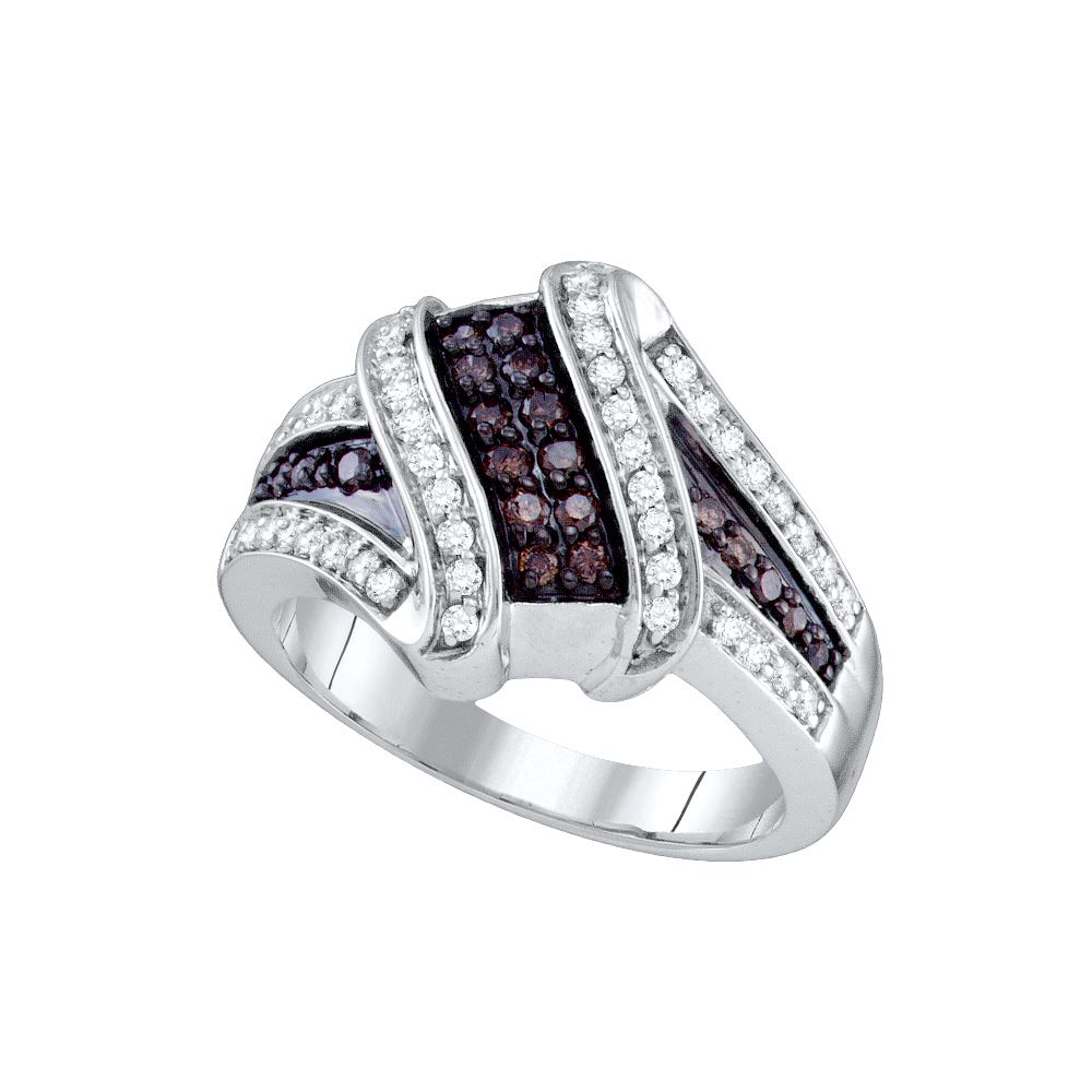 REF-66W2H ---- 0.55 CTW Cognac-brown Colored Diamond Ribbon Crossover Cocktail Fine Ring 10K White Gold - SKU: GD65251