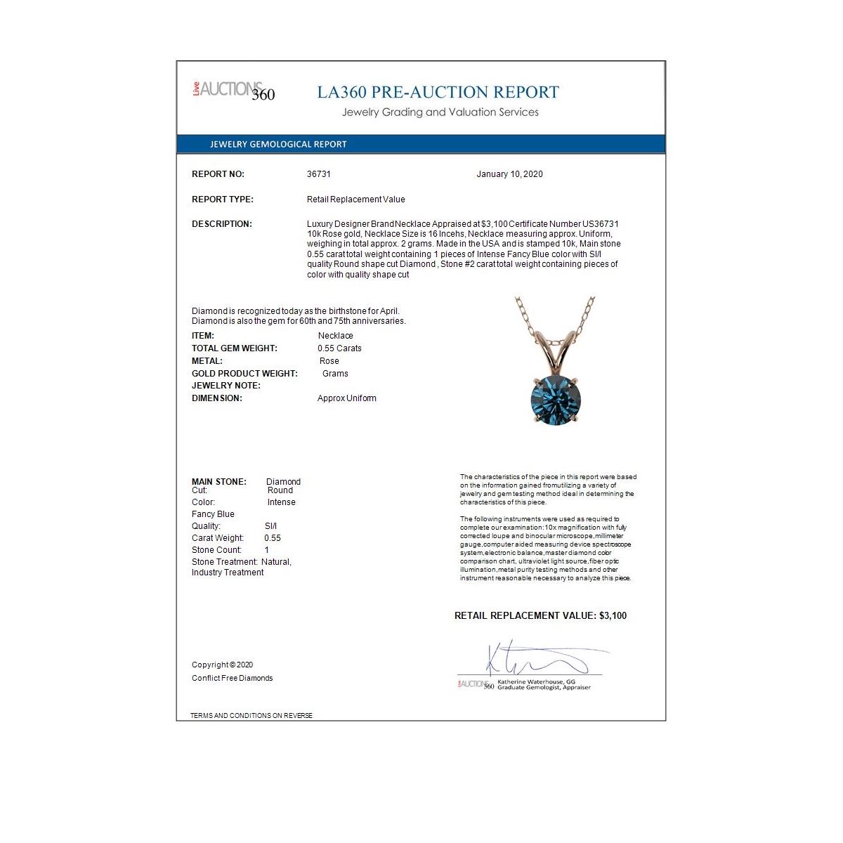 REF-34H4R - SKU: 36731 ---- 0.55 ctw Certified Intense Blue Diamond Necklace 10k Rose Gold