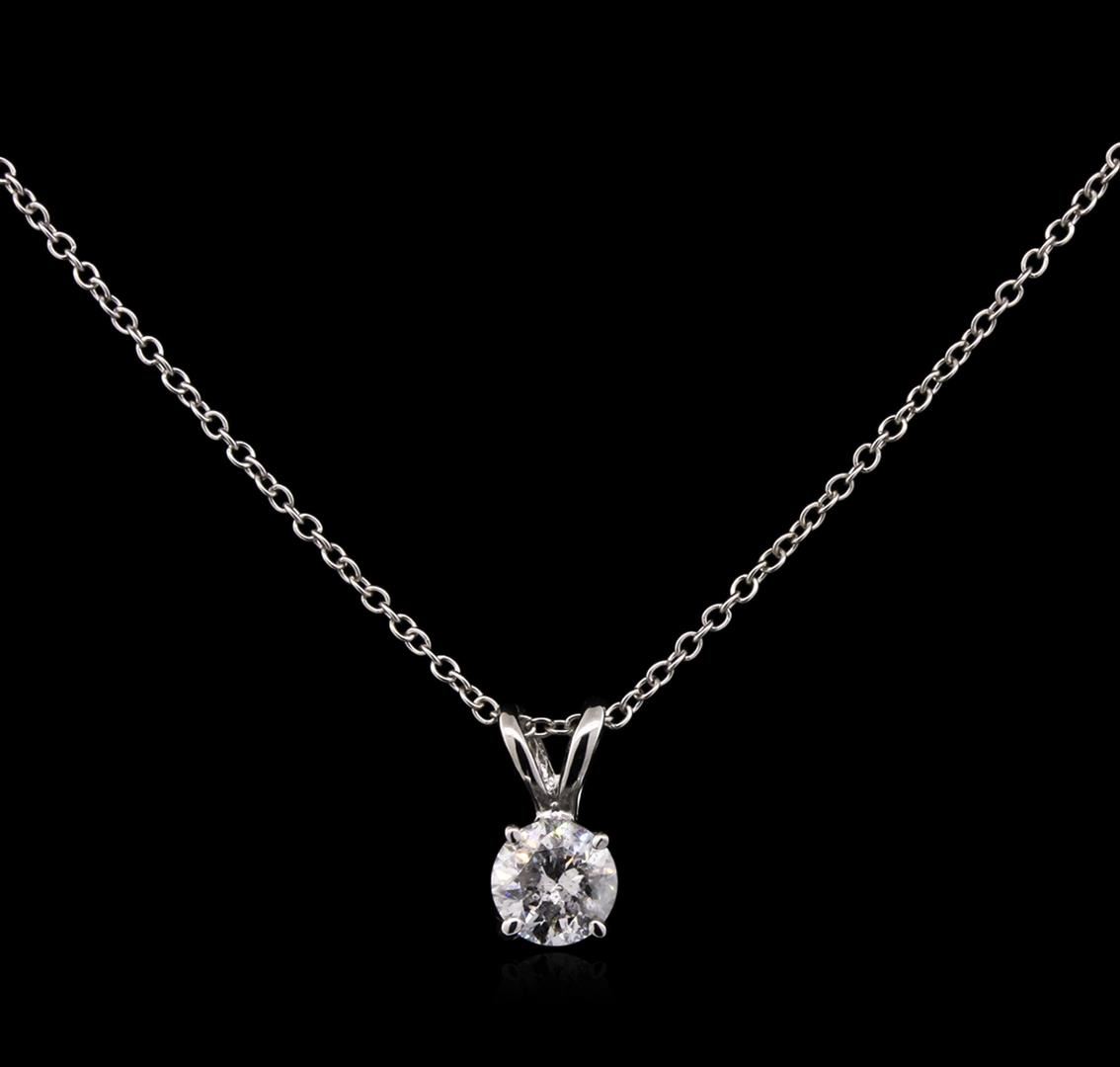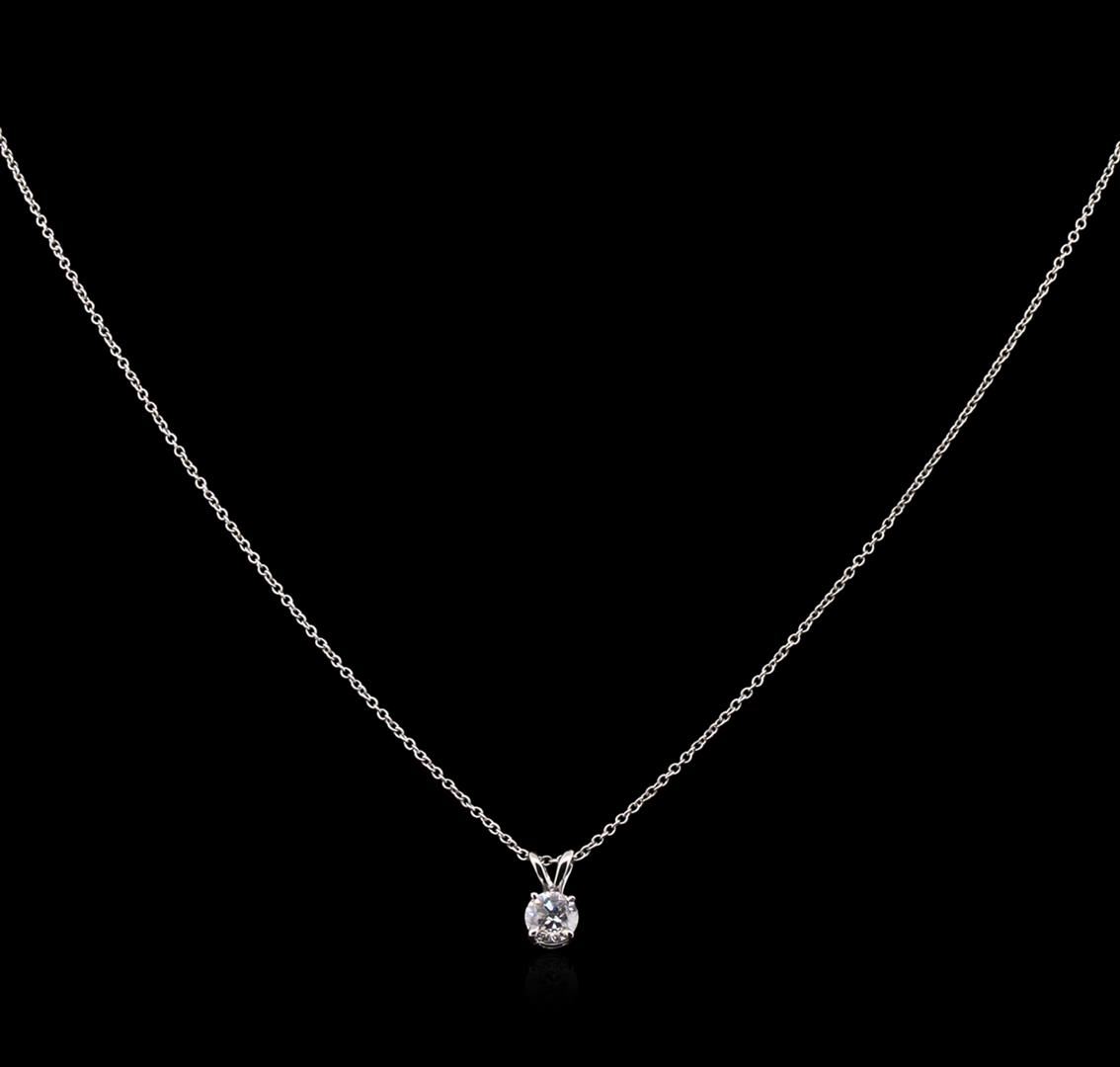 One solitaire pendant with chain featuring: 14KT white gold weighing 1.50 grams containing one diamond with a total weight of 0.55ct.