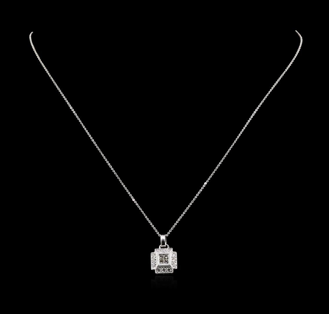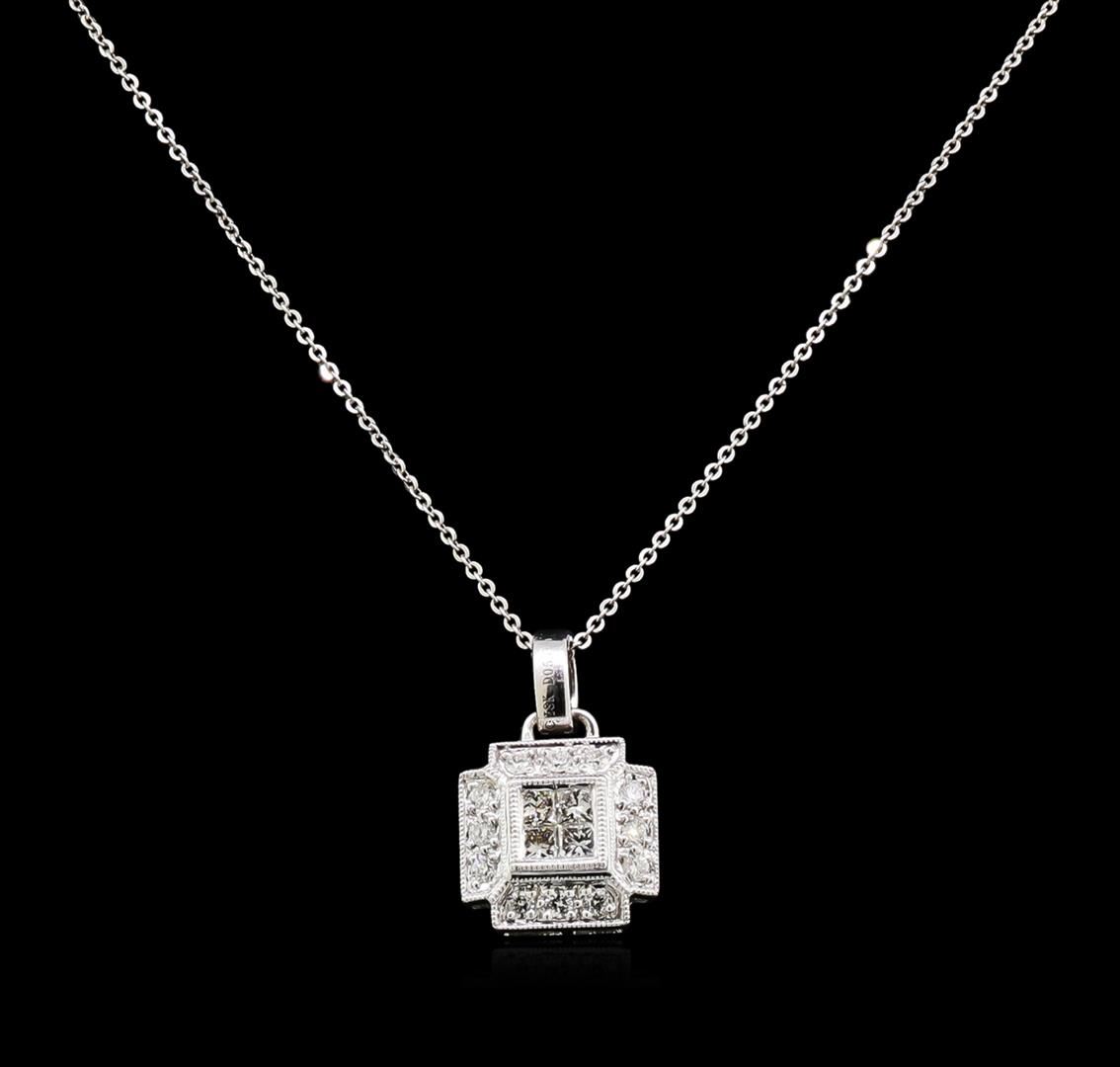 One pendant with chain featuring: 18KT white gold weighing 4.00 grams containing diamonds with a total weight of 0.55ct.