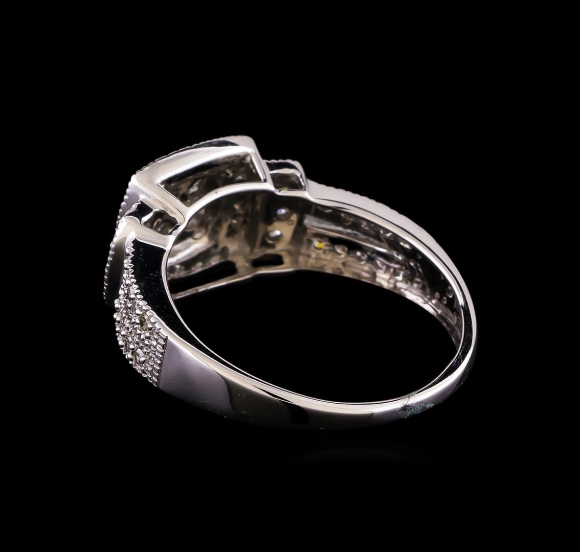 One electronically tested 10KT white gold lady's cast wedding ring with a split shank cathedral halo with a bright polish finish. The featured lady's ring has a shank measuring 1.47 millimeters in width. Identified with markings of '10K'. Condition is new, good workmanship. Containing: Four prong set round brilliant cut diamonds, measuring 2.20 - 2.15 x 1.35mm (depth est.) approximate total weight of 4 Stones = 0.16ct. Graded in the setting. Clarity I-1 to I-2. Color: H - I Cut Good Six prong set single cut diamonds, measuring 1.70 - 1.60 x 1.02mm (depth est.) approximate total weight of 6 Stones = 0.10ct. Graded in the setting. Clarity SI-1 to SI-2. Color: H - I Cut Good Forty prong set single cut diamonds, measuring 1.30 - 1.20 x 0.75mm (depth est.) approximate total weight of 40 Stones = 0.29ct. Graded in the setting. Clarity SI-2 to I-1. Color: H - I Cut Good. Total Weight of Diamonds 0.55ct.. Total Weight of Ring 3.10gm. GAS Appraised at $1,735.00.