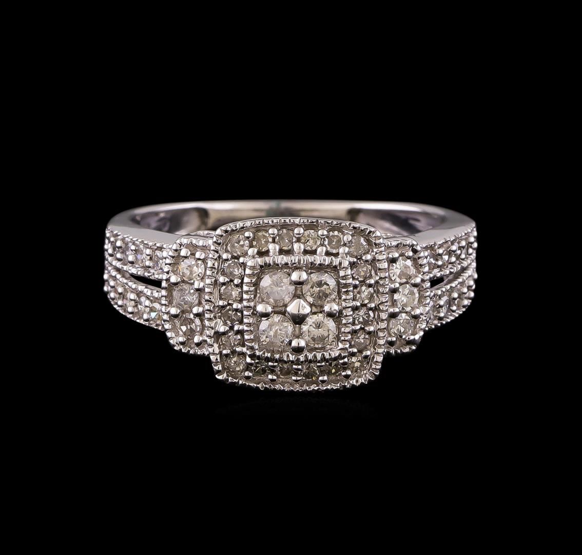 One electronically tested 10KT white gold lady's cast wedding ring with a split shank cathedral halo with a bright polish finish. The featured lady's ring has a shank measuring 1.47 millimeters in width. Identified with markings of '10K'. Condition is new, good workmanship. Containing: Four prong set round brilliant cut diamonds, measuring 2.20 - 2.15 x 1.35mm (depth est.) approximate total weight of 4 Stones = 0.16ct. Graded in the setting. Clarity I-1 to I-2. Color: H - I Cut Good Six prong set single cut diamonds, measuring 1.70 - 1.60 x 1.02mm (depth est.) approximate total weight of 6 Stones = 0.10ct. Graded in the setting. Clarity SI-1 to SI-2. Color: H - I Cut Good Forty prong set single cut diamonds, measuring 1.30 - 1.20 x 0.75mm (depth est.) approximate total weight of 40 Stones = 0.29ct. Graded in the setting. Clarity SI-2 to I-1. Color: H - I Cut Good. Total Weight of Diamonds 0.55ct.. Total Weight of Ring 3.10gm. GAS Appraised at $1,735.00.