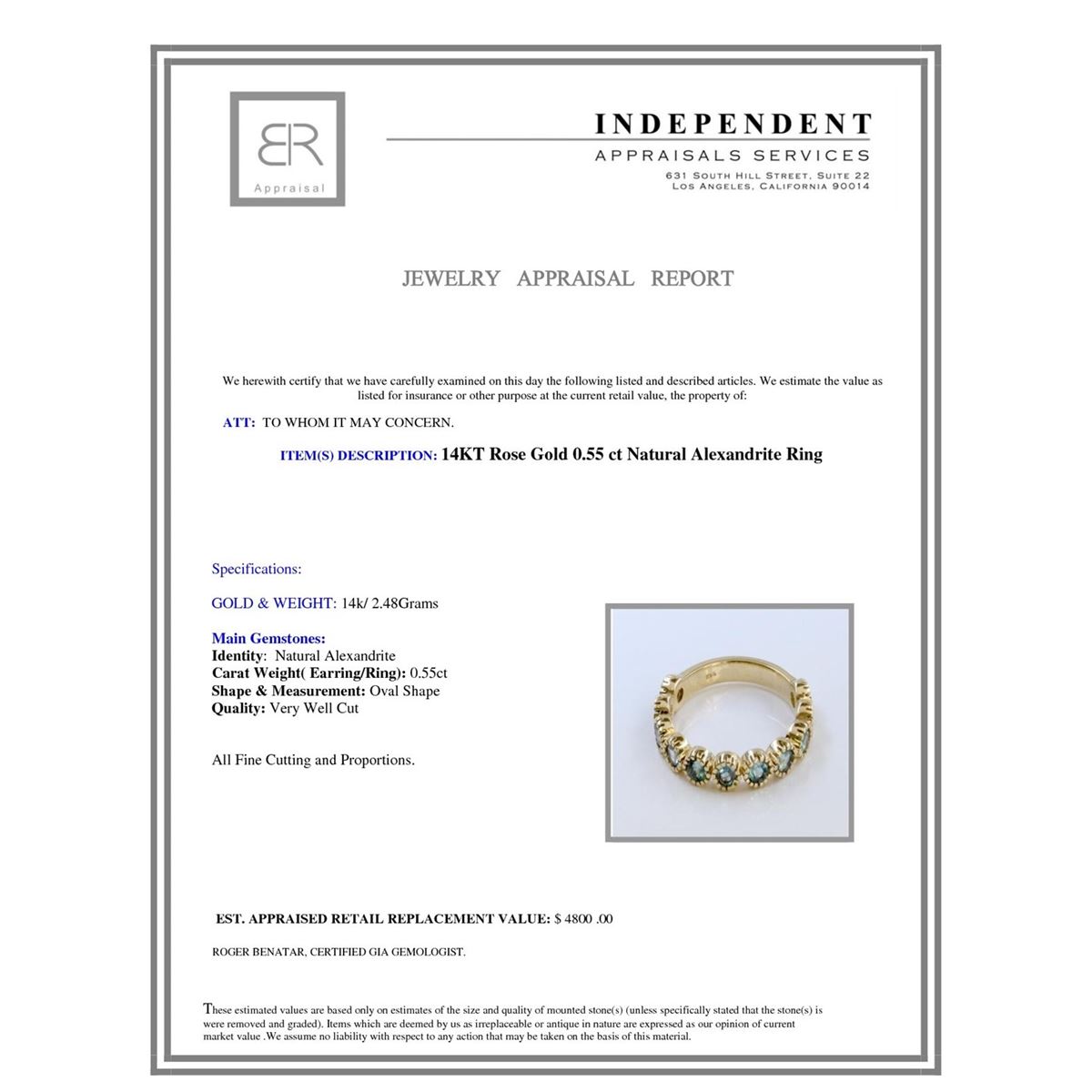 14K ROSE GOLD NATURAL ALEXANDRITE RING:2.48 GRAMS/ALEXANDRITE :0.55CT/#GVR1234