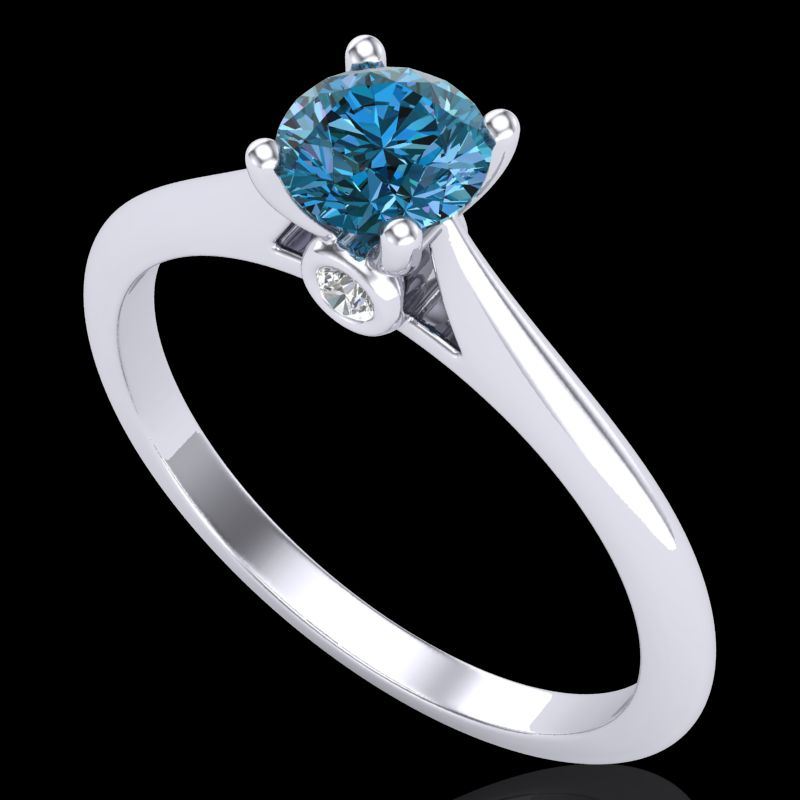 REF-81W8F -38188 ---- 0.56 CTW Fancy Intense Blue Diamond Solitaire Art Deco Ring 18K White Gold ---- Luxury Designer Brand Ring Appraised at $4,950 Certificate Number US38188 18k White gold, Ring Size is 7, Ring measuring approx. Uniform, weighing in total approx. 2.6 grams. Made in the USA and is stamped 18k, Main stone 0.5 carat total weight containing 1 pieces of Intense Fancy Blue color with SI quality Round shape cut Diamond , Stone #2 0.06 carat total weight containing 2 pieces of H-I color with VS/SI quality Round shape cut Diamond