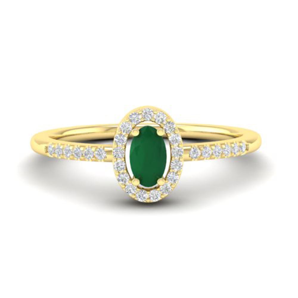 REF-23M5G - SKU: 21387 ---- 0.56 ctw Emerald & Micro Pave VS/SI Diamond Ring 18k Yellow Gold