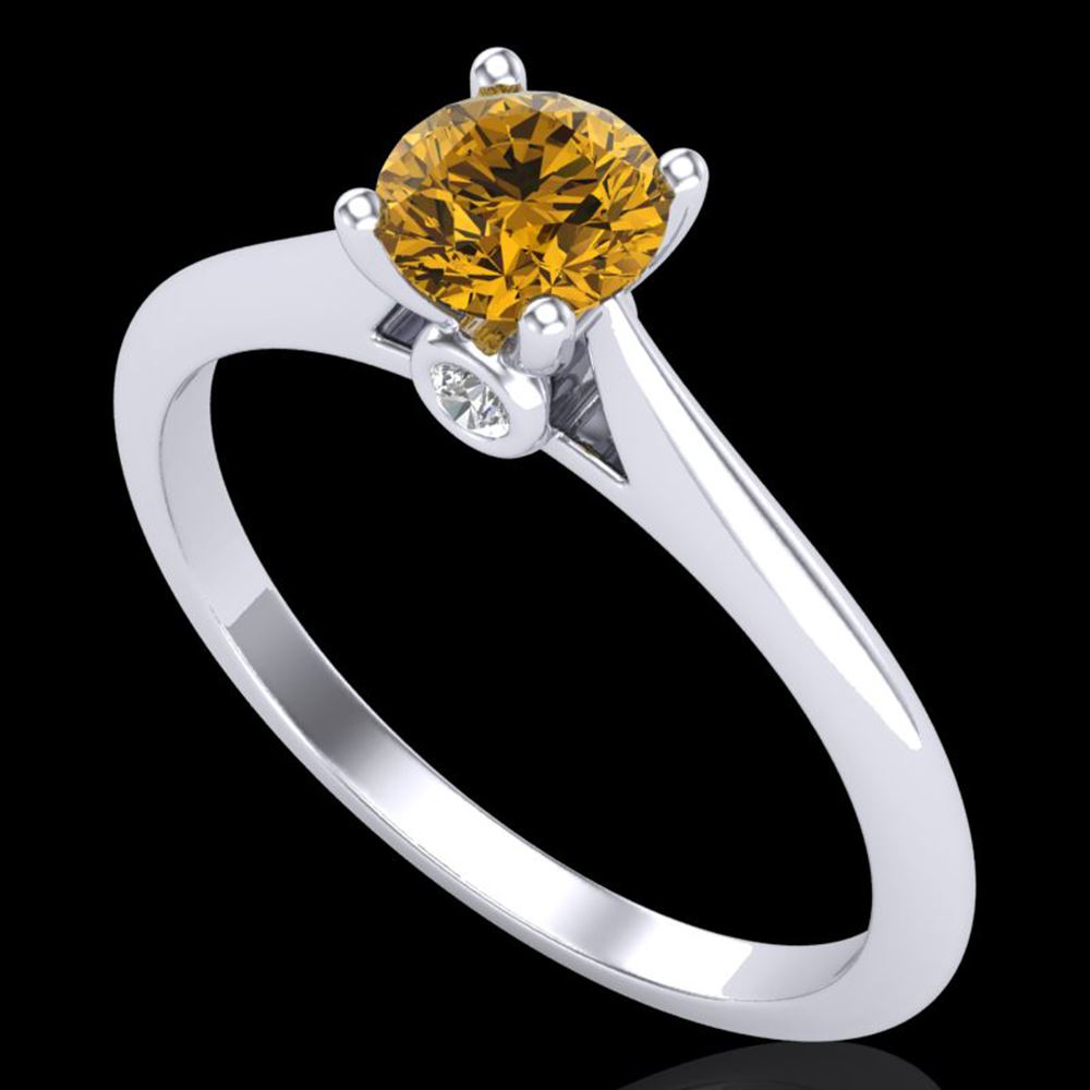 REF-72W3H - SKU: 38190 ---- 0.56 ctw Intense Fancy Yellow Diamond Art Deco Ring 18k White Gold