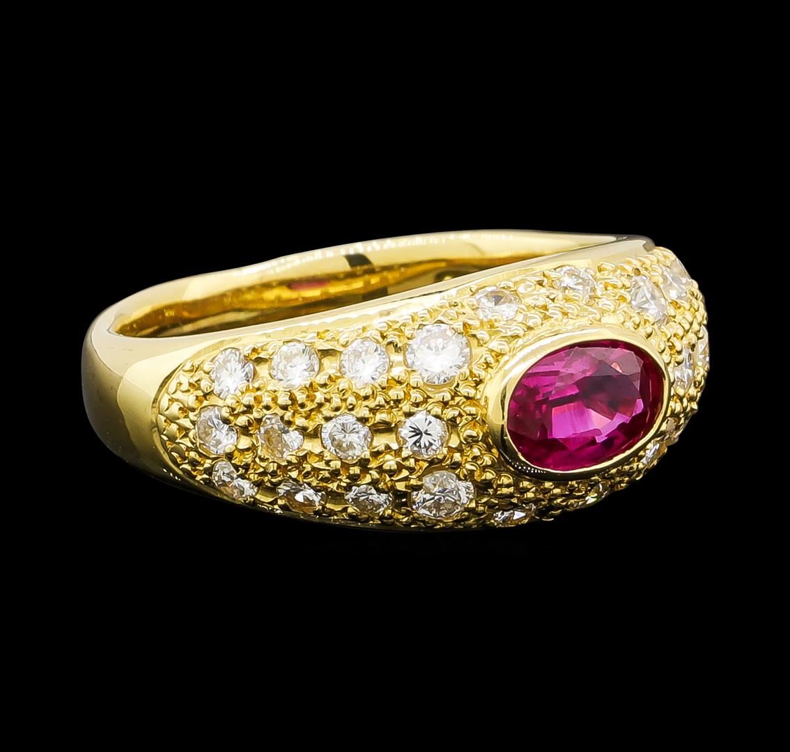 One ring featuring: 18KT Yellow Gold containing Ruby with a total weight of 0.56ct and Diamonds. Total Weight of Ring: 5.4 grams.