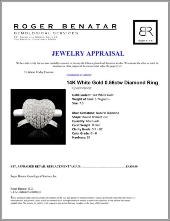 Regarding Appraised Jewelry and Loose Stones - Auctionfarm sends them out to a third party for Retail Replacement Value Appraisals, which are the most common. These types of evaluations are written for insurance needs. This would be the cost to replace the jewelry with an item of equal quality and kind, considered to be the current market price or the replacement value. This type of appraisal is done to protect you in the event of damage or loss of a valuable item. Our appraisals are conducted by independent 3rd Party appraisal firms that utilizes Certified GIA Gemologist. Appraisals should be used for verification of gemstone and/or metal weight, size, and grade only, not actual value. Appraisal value should be considered for insurance purposes only, not actual value, as price varies greatly from retail locations thru out the world. Items should not be purchased with the expectation to resell for appraisal price, or for profit.