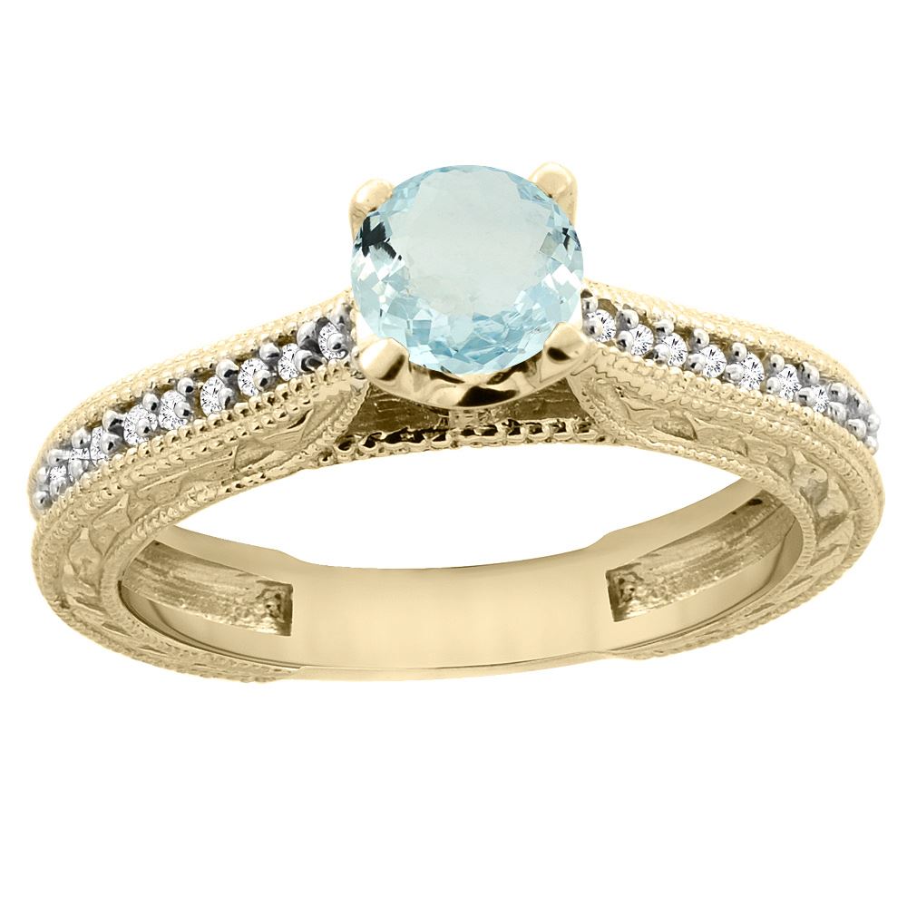 REF-54A4X - SKU: SC-CY412287 ---- 0.57 CTW Aquamarine & Diamond Ring 14K Yellow Gold