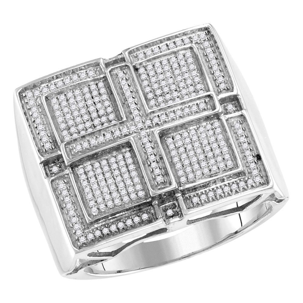 REF-82X4Y- SKU: GD66963 ---- 0.57 CTW Mens Pave-set Diamond Square Cross Cluster Ring 10KT White Gold
