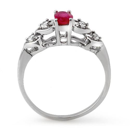 0.57 CTW Ruby & Diamond Ring 18K White Gold ---- Luxury Designer Brand Ring Appraised Retail Price at $1,950 ---- SKU Number US12596 18k White gold Ring Size is 7, Ring measuring approx. 3/8" x 3/4" , weighing in total approx. 3 grams. Made in the USA and is stamped 18k, Main stone 0.51 carat total weight containing 1 pieces of Mid-Opaque-Deep Red color with AAA quality Oval shape cut Ruby , Stone #2 0.06 carat total weight containing 4 pieces of H-I color with VS/SI quality Round shape cut