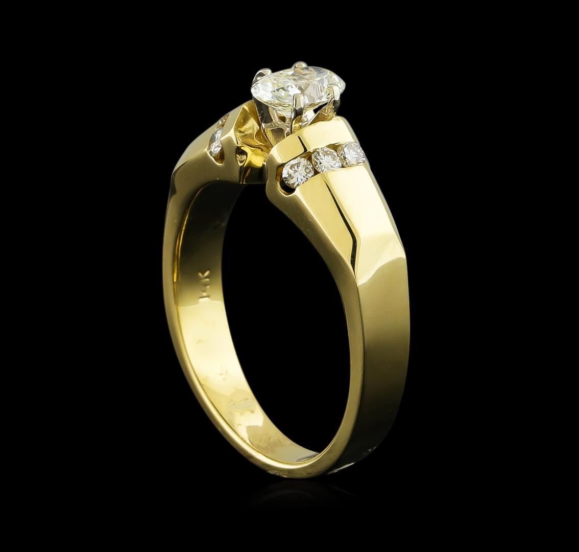 One electronically tested 14KT yellow gold lady's cast wedding ring with a bright polish finish. The featured lady's ring has a shank measuring 3.12 millimeters wide. Identified with markings of "14K". Condition is new, good workmanship. Containing: One prong set oval shaped cut diamond, measuring 6.27 x 4.34 x 2.73mm (depth est.) approximate weight of 0.49ct. Graded in the setting. Clarity: SI-1. Color: L - M. Cut Good Eight channel set round brilliant cut diamonds, measuring 1.90 - 1.80 x 1.11mm (depth est.) approximate total weight of 8 Stones = 0.18ct. Graded in the setting. Clarity: VS-2 to SI-1. Color: H -  Very Good. Total Weight of Diamonds 0.67ct. Total Weight of Ring 6.70gm GAS Appraised at $3,400.00.