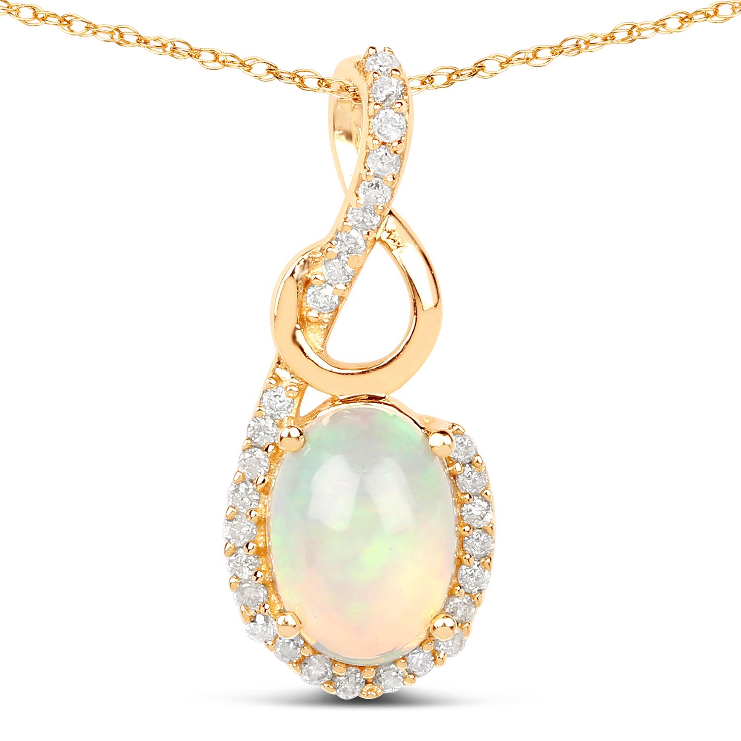 REF-30W2M ---- 0.57 ctw Ethiopian Opal & Diamond Pendant 14K Yellow Gold