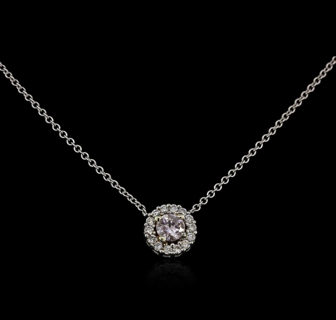 One necklace featuring: 14KT white and yellow gold weighing 2.60 grams containing one center purple diamond with a total weight of 0.37ct and side diamonds with a total weight of 0.20ct.