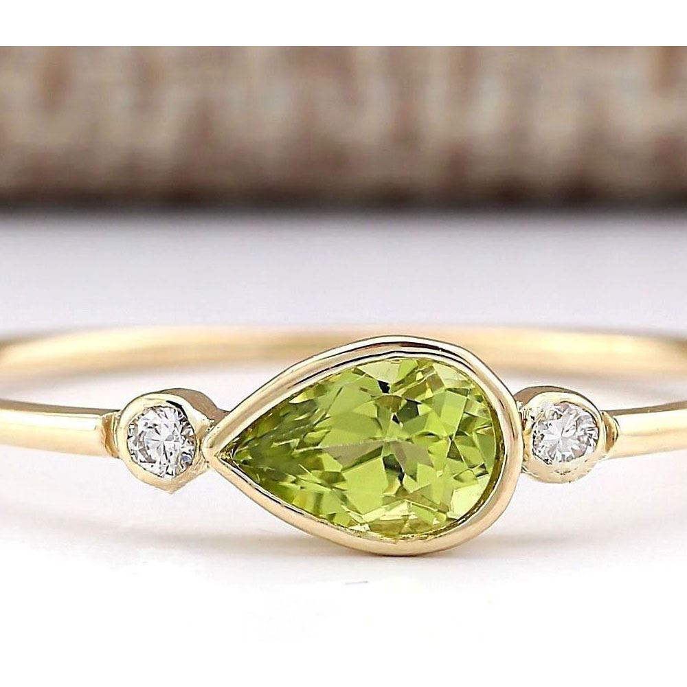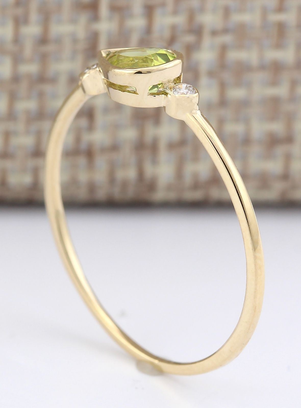 .58 CTW Natural Peridot And Diamond Ring In 14k Yellow Gold