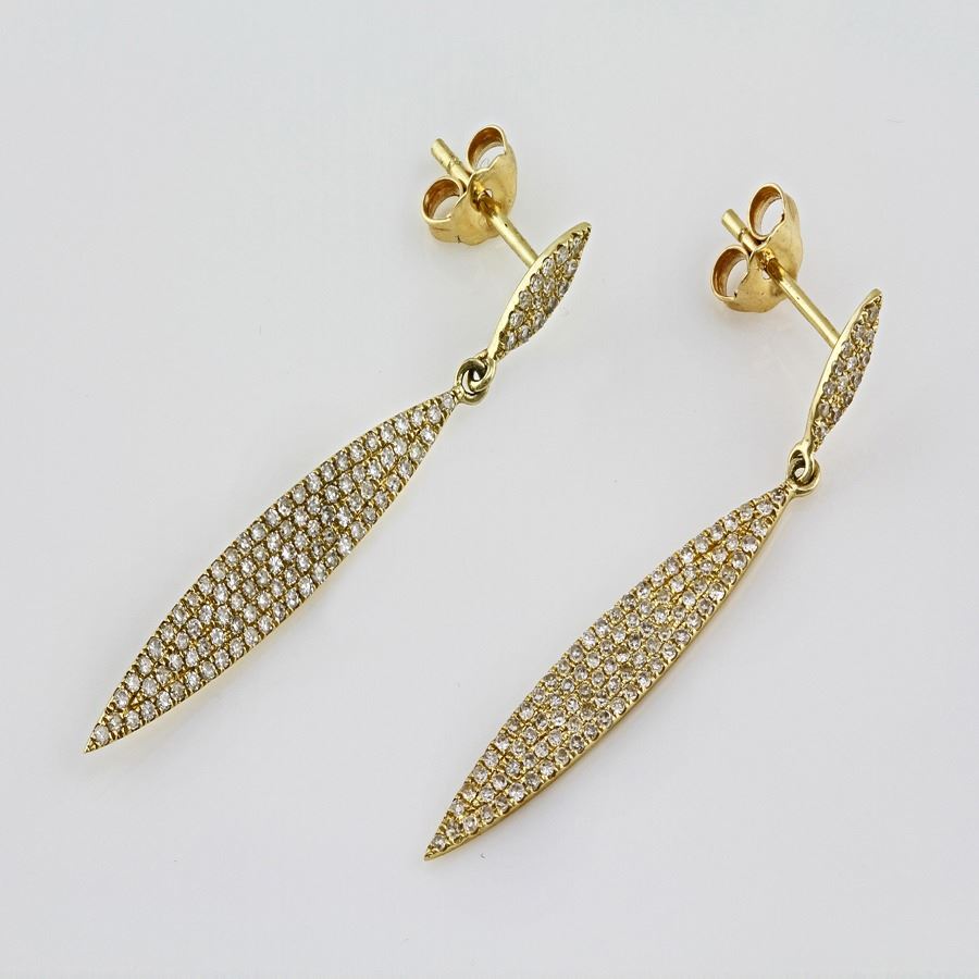 0.58 ct F, SI2-I1 Pavé Diamonds Dagger Dangle Drop Earrings 14Kt Yellow Gold 1.95 gms
