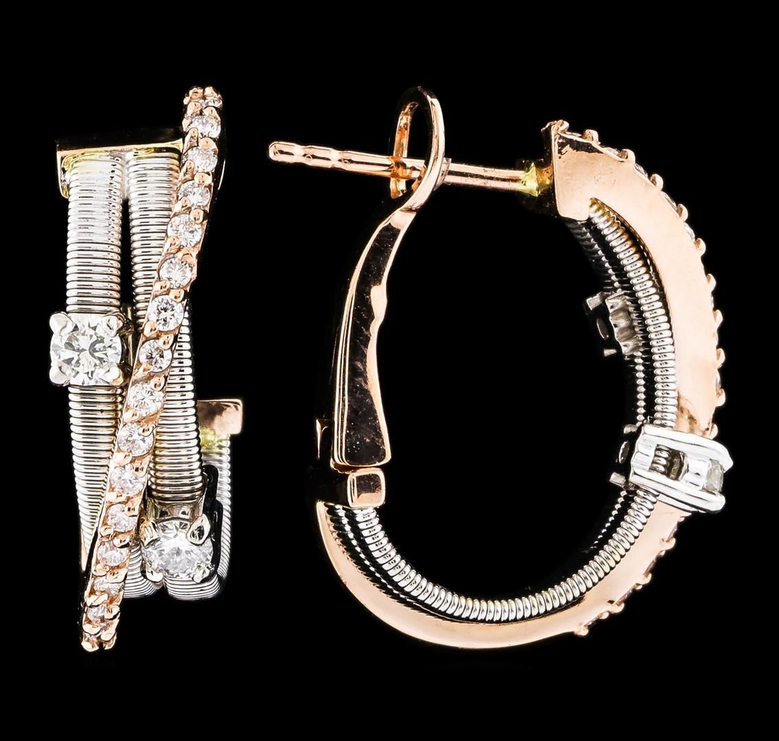 One pair of Diamond Earrings featuring: 14KT Two-Tone Gold with a total weight of 7.30 grams, 32 Diamonds with a total weight of 0.30ctw, and 4 Diamonds with a total weight of 0.28ctw.