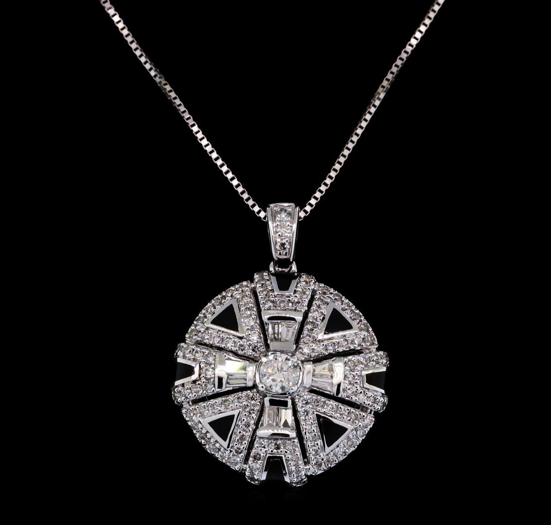 One pendant with chain featuring: 14KT white gold weighing 4.3 grams containing one center diamond weighing 0.08ct and surrounding diamonds weighing 0.42ctw.