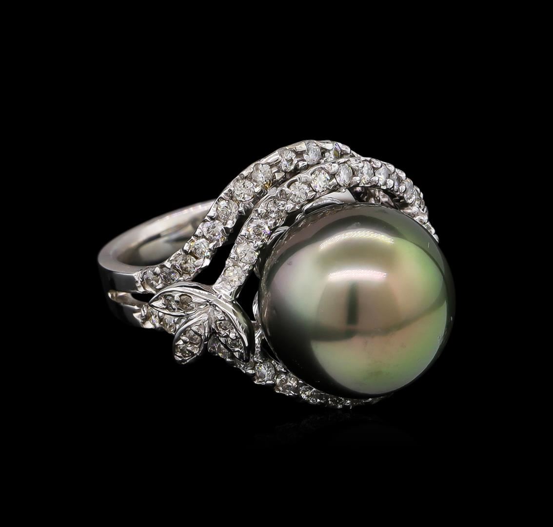 One ring featuring: 14KT white gold weighing 4.86 grams containing one pearl and side diamonds with a total weight of 0.58ct.